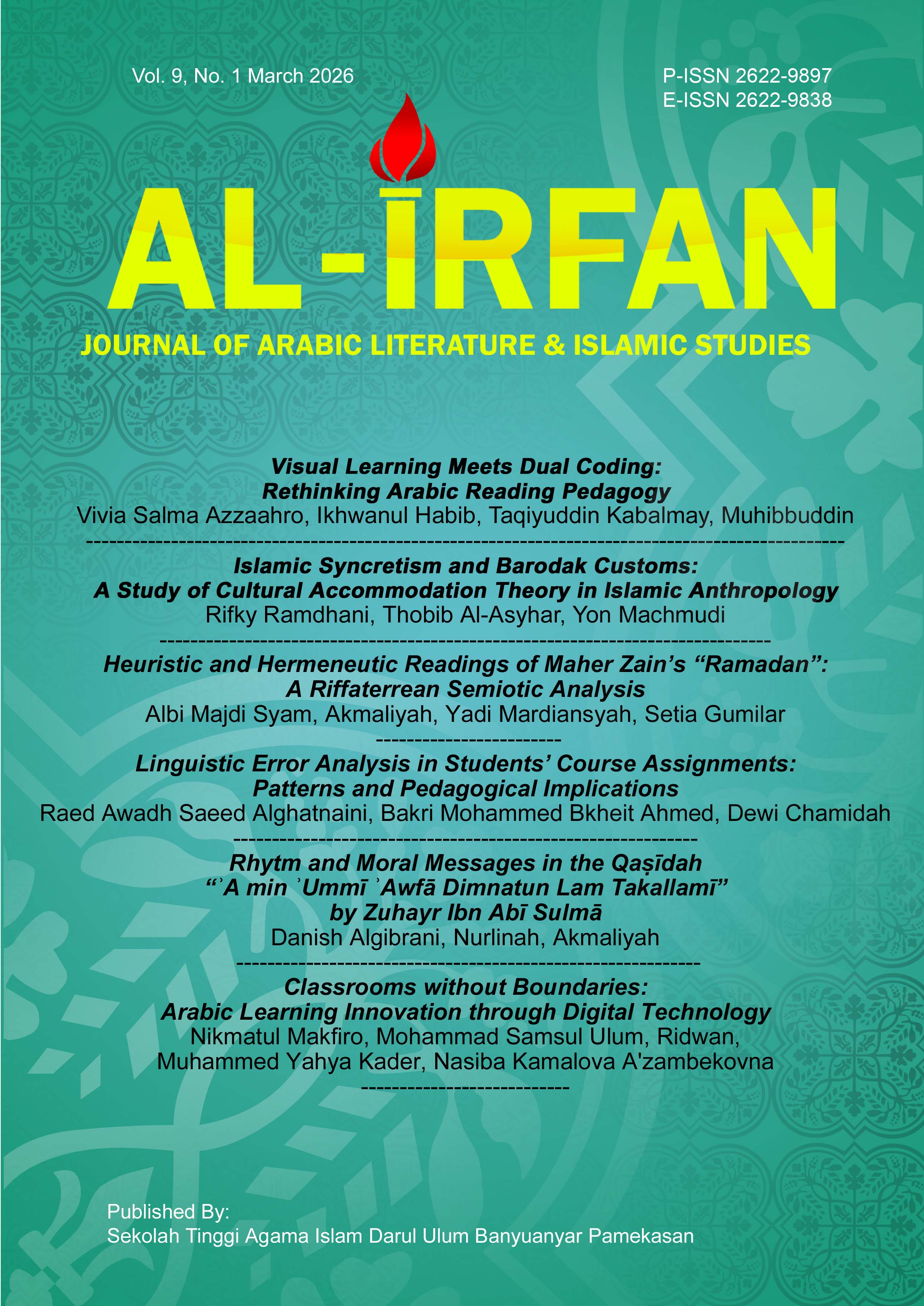 Al-Irfan: Journal of Arabic Literature and Islamic Studies is published under conditions Creative Commons Attribution 4.0 International License / CC BY 4.0 This license permits anyone to copy and redistribute this material in any form or format, modify, modify, and make derivative works of this material for any purpose, including commercial purposes, so long as they credit the author for the original work.