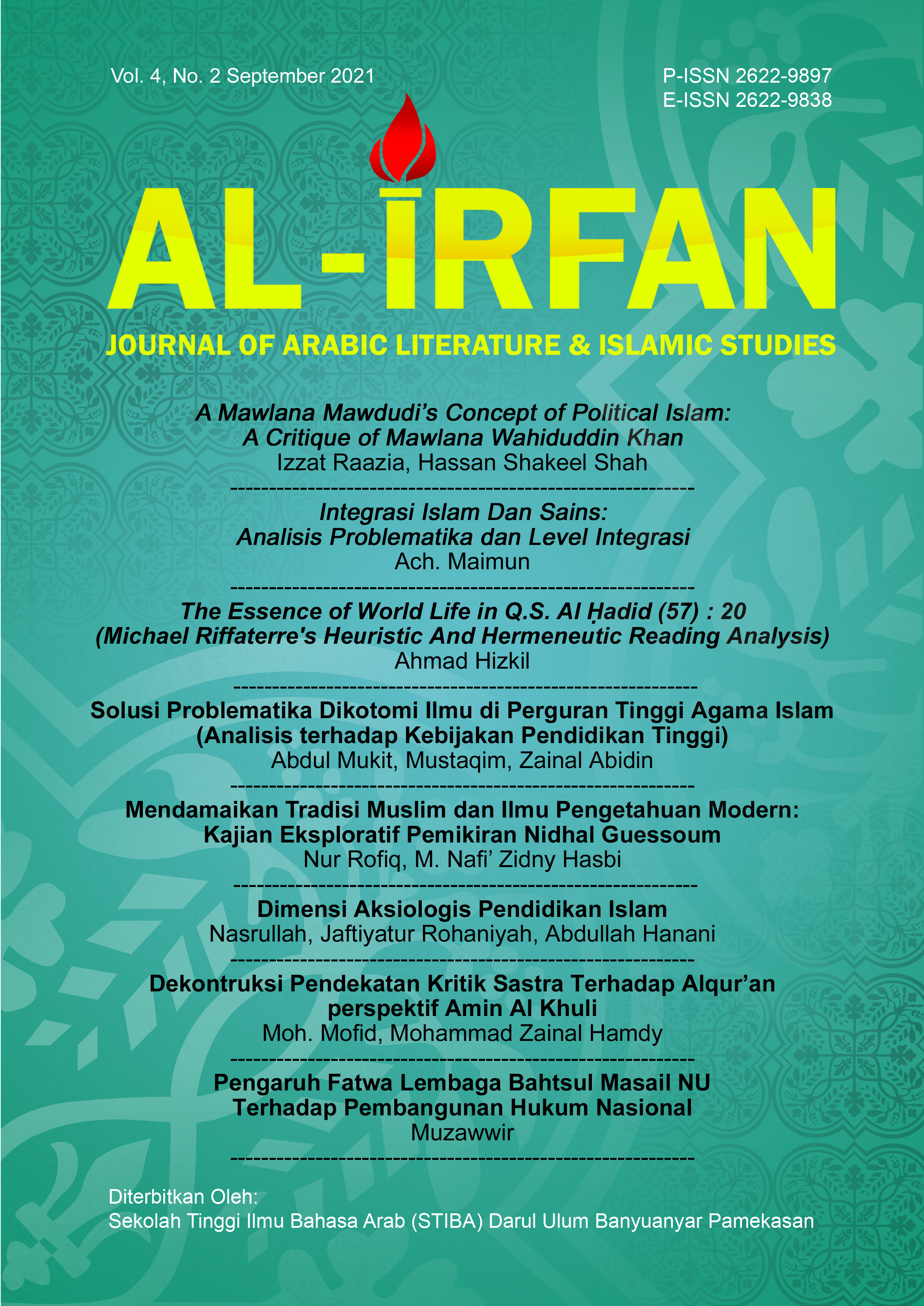 Al-Irfan: Journal of Arabic Literature and Islamic Studies is published under conditions Creative Commons Attribution 4.0 International License / CC BY 4.0 This license permits anyone to copy and redistribute this material in any form or format, modify, modify, and make derivative works of this material for any purpose, including commercial purposes, so long as they credit the author for the original work.
